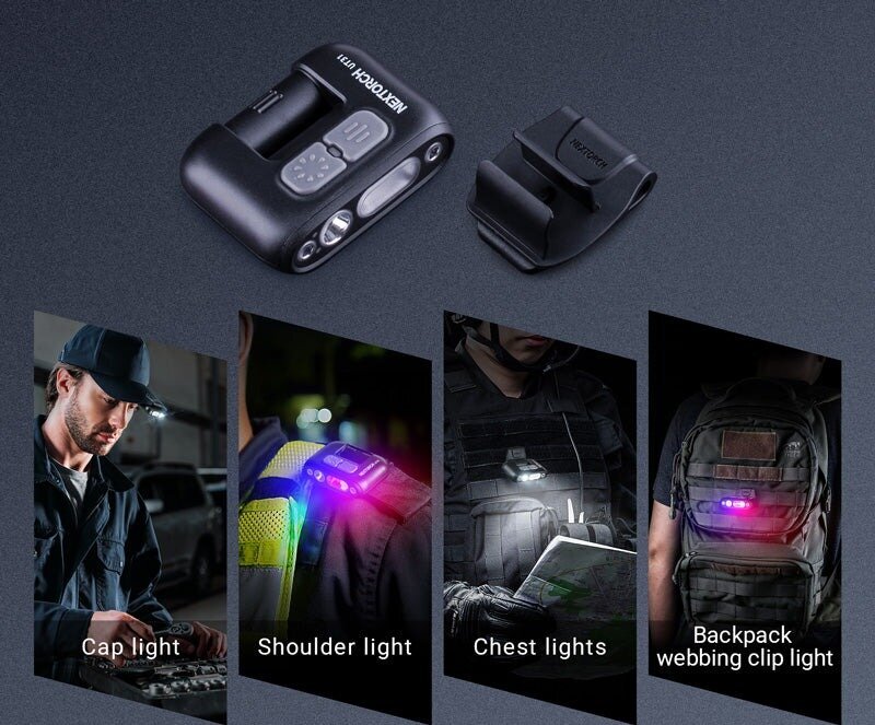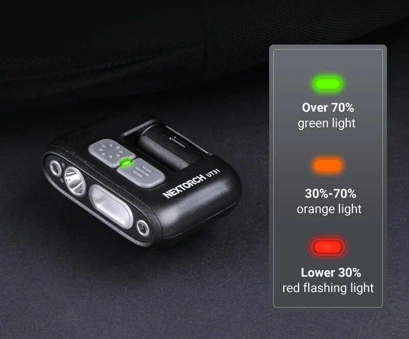 Налобний ліхтар Nextorch UT31 – це компактний освітлювальний прилад для аварійних ситуацій. Три джерела світла: білий, червоний та синій. Керується жестами, сенсорна чутливість. Він легкий і вміщається в кишені. Працює від вбудованої батареї, що перезаряджається, ємністю 640 мАч із зарядним портом Type-C. Поєднується з різними додатковими аксесуарами для гнучкого використання як налобник, велосипедний ліхтар чи ліхтар для шолома.