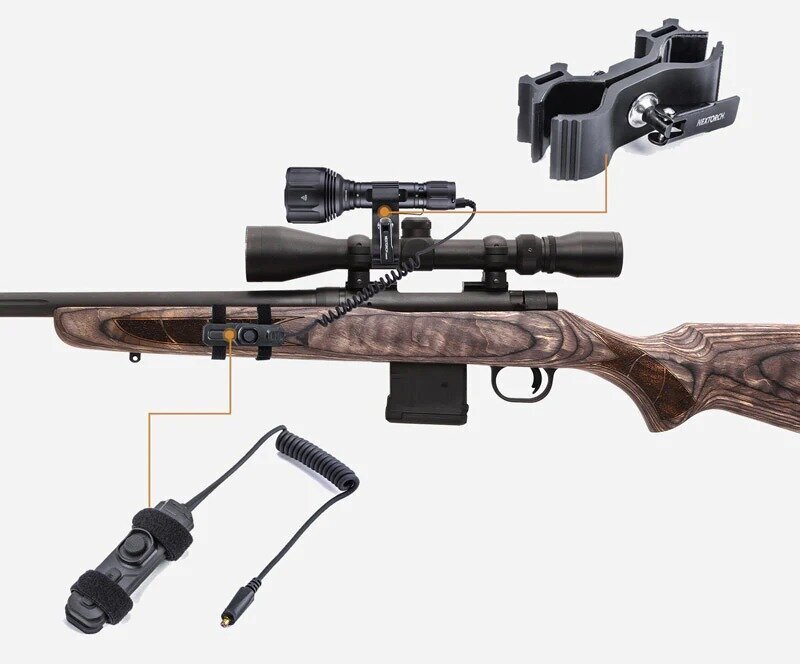 Ліхтар Nextorch T7 MAX HUNTING SET призначений для мисливської діяльності. Його найбільша яскравість світла досягає 1200 люменів, а далекобійність дорівнює 1100 метрів. Поєднується з тактичними аксесуарами. Живлення походить від батареї 21700. Максимальний час роботи – до 80 годин.