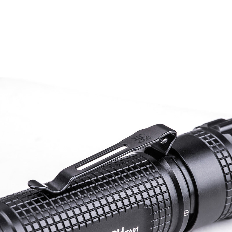 Модель має зручну кліпсу з алюмінію, щоб можна було повісити ліхтар на пояс або зафіксувати в кишені. А в поєднанні з тактичним кільцем FR-1 ліхтар набуває додаткову ергономічність і надійний хват навіть в рукавичках.