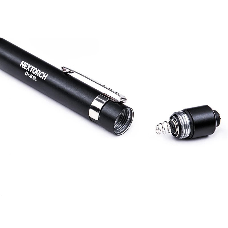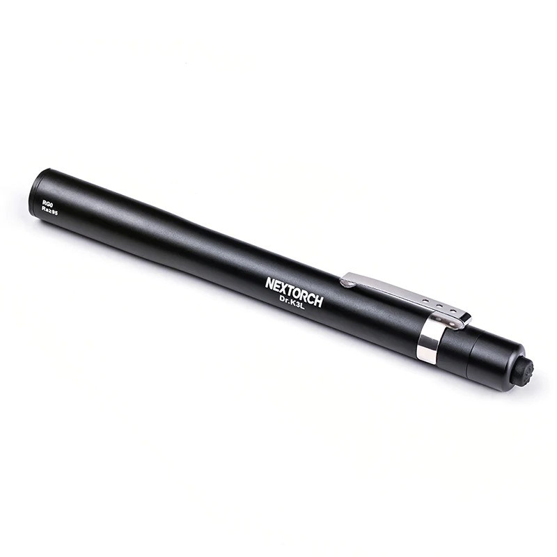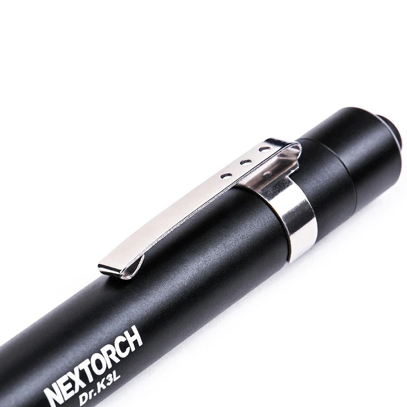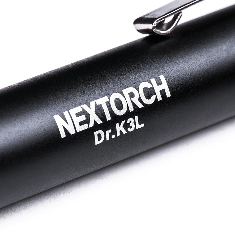 Ручний ліхтар Nextorch Dr.K3L є медичним освітлювальним приладом, призначеним для діагностики. Компактний ліхтар має габарити, які можна порівняти з ручкою для письма, хромований протиковзкий задній перемикач забезпечує нормальне використання навіть у рукавичках. Працює від двох батарейок ААА, яскравість 75 люменів максимальна, а дальність променя досягає 40 метрів.