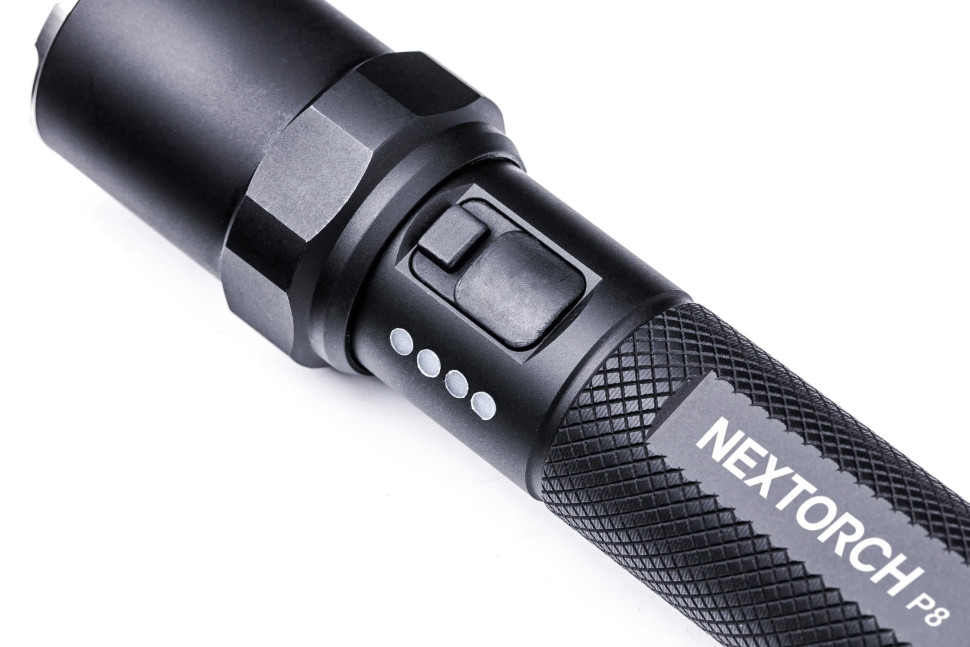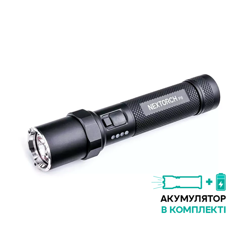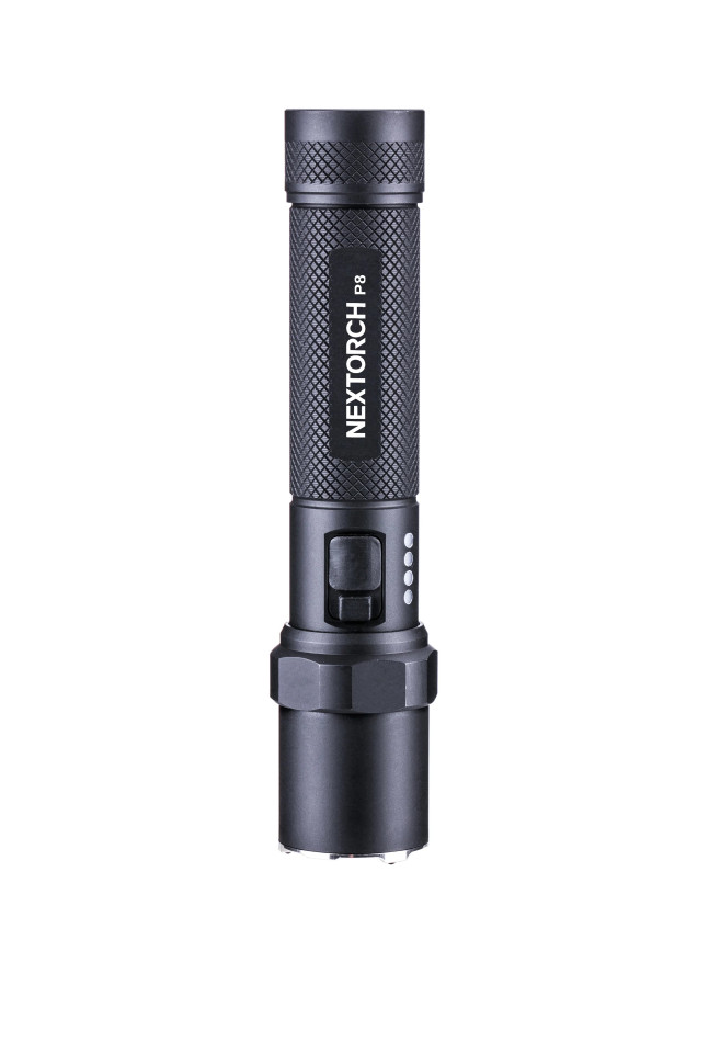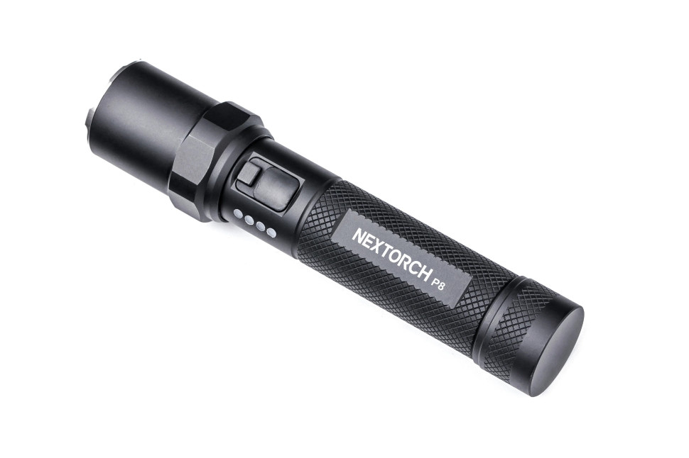 Опис Ліхтар ручний Nextorch P8 чорний Ручний ліхтар компактний і потужний з яскравістю потоку до 1300 люменів при дальності променя 240 метрів. Модель оснащена склобоєм. У сталевий безель вбудовані 3 цирконієві кульки, які розбивають вікна автомобіля та забезпечують самооборону у надзвичайній ситуації.