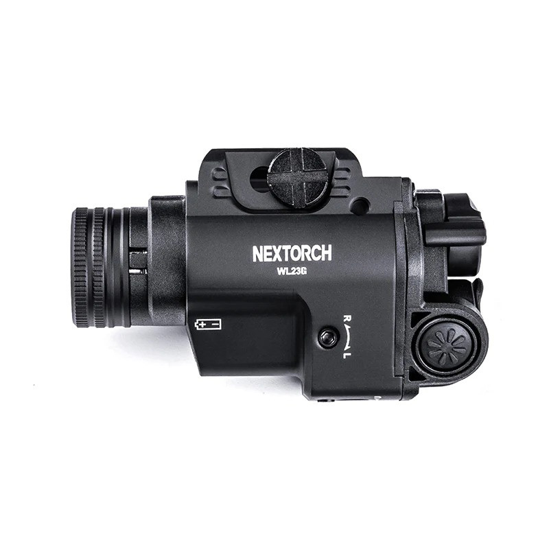Ручний ліхтар Nextorch WL23R дає світловий потік 1300 люменів, дальність променя становить 180 метрів. Зелений лазер: <5 мВ. Живлення від двох літієвих батарей CR123A задовольняє потреби у освітленні протягом тривалого часу.